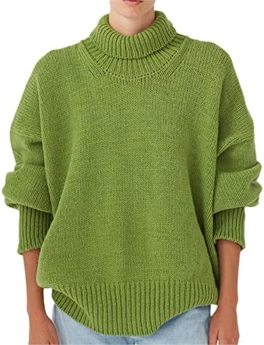 Gebreide dikke dames effen coltrui trui winter oversized lange mouwen basic truien dames mode kantoorkleding, Groen, M : Amazon.nl: Kleding, schoenen & sieraden