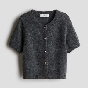 Vest korte mouw ajour zand